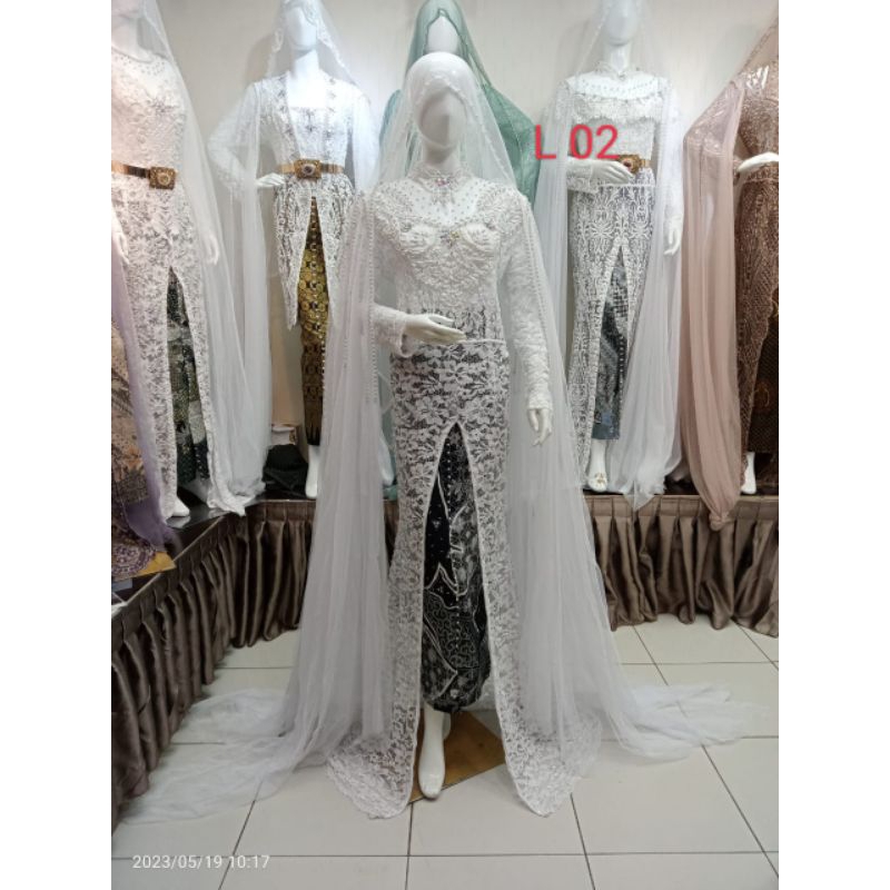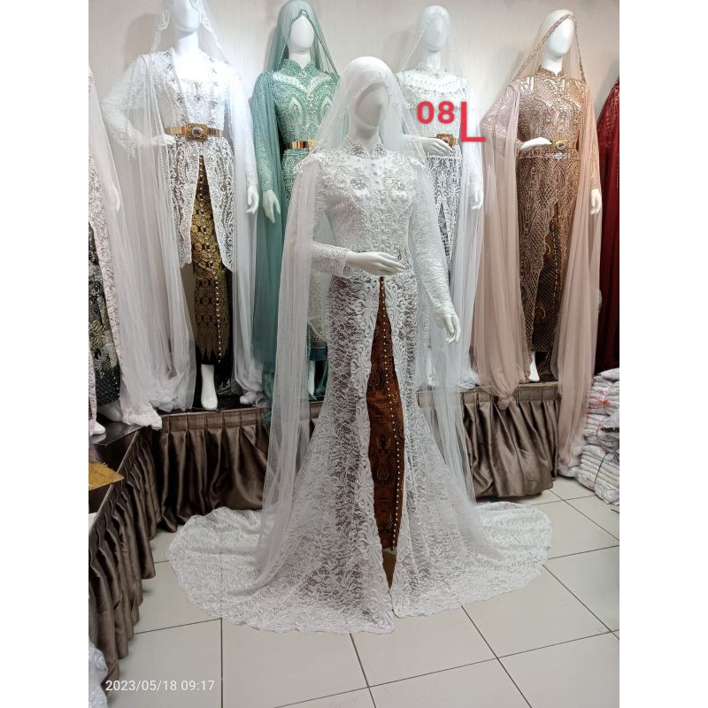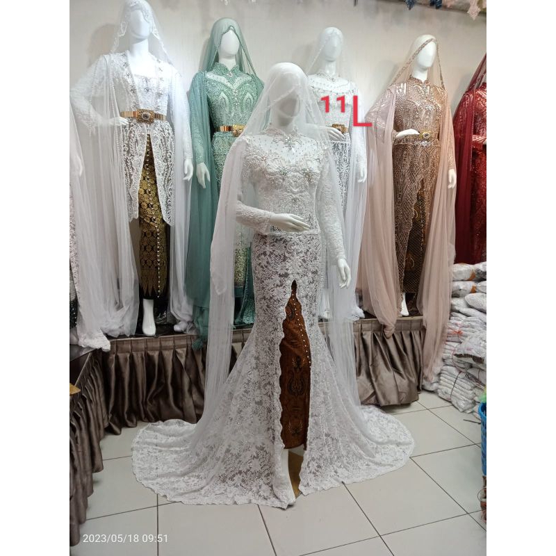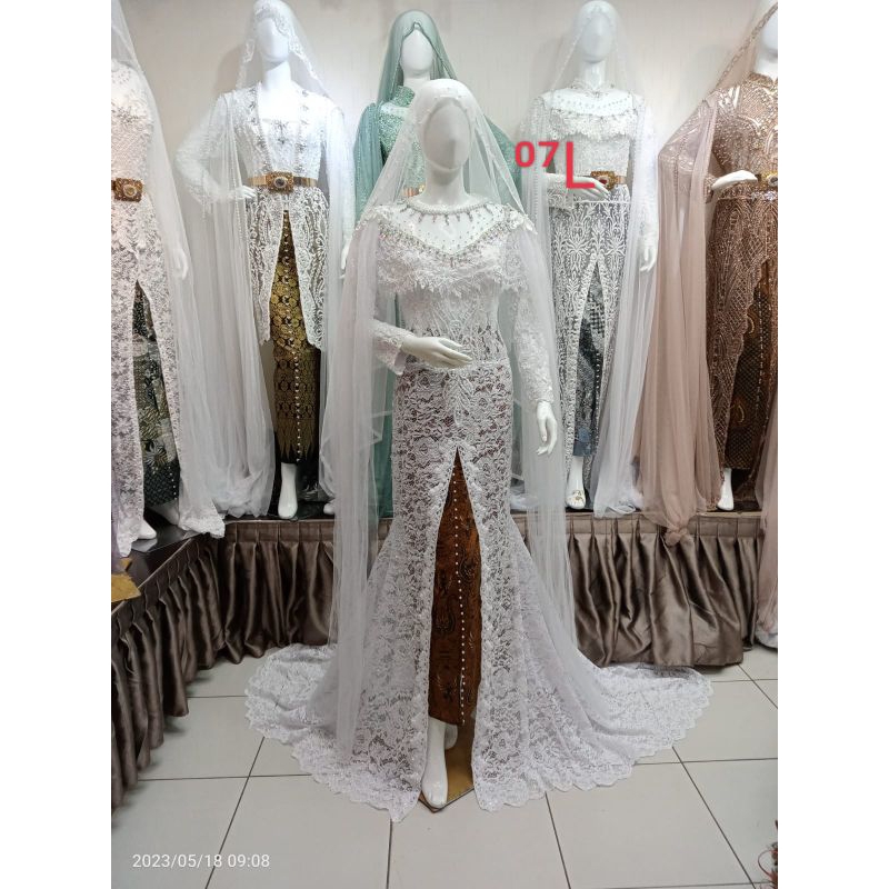 Pakaian Wanita > Wedding Dress > kebaya pengantin akad nikah full Payet depan belakang mobil belah satu set rok selayer bahu kerudung)
