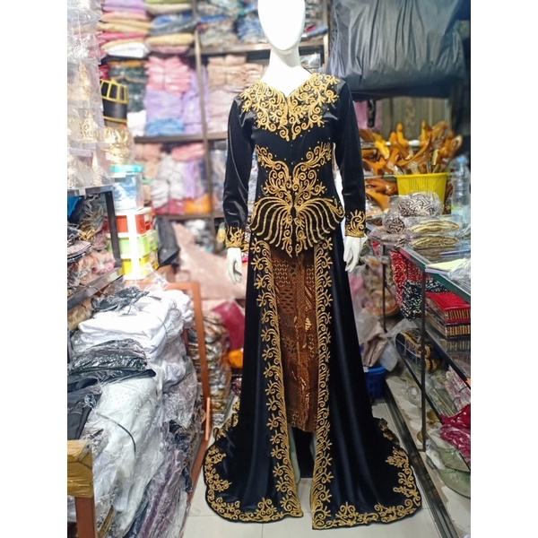 Your browser does not support the video tag.Video perkenalan produk Kebaya pengantin bludru sanghai ekor. Sumber: Shopee.