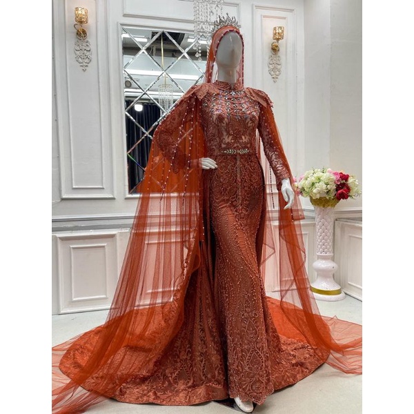 Pakaian Wanita > Wedding Dress > kebaya slim duyung full Payet ekor pisah)