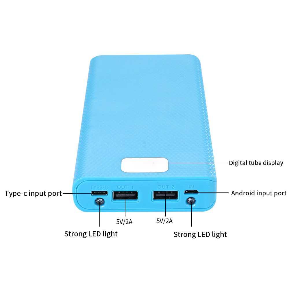 Spesifikasi Kebidu DIY Power Bank Case USB Type C 8 x 18650 2 Port - C18 Voltase : Input: 5 V, 2 A