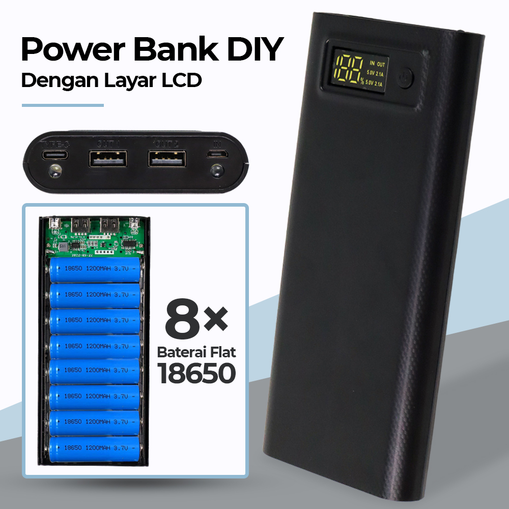 Alat ini merupakan power bank DIY yang mana dapat Anda merakit sendiri kapasitas sesuai dengan kebutuhan. Power bank DIY menggunakan baterai flat 18650 sebanyak 8 buah sehingga jauh lebih murah dibandingkan dengan power bank pada umumnya. Dibuat dari bahan berkualitas, power bank DIY ini sangat ringan tapi kokoh sehingga awet untuk penggunaan jangka panjang.