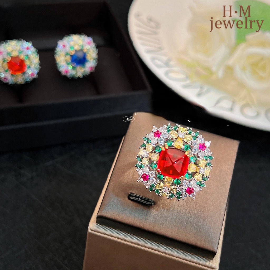 Kelompok Mewah Bertatahkan Gula Zamrud Alami Menara Cincin Retro Fanta Berlian Perhiasan