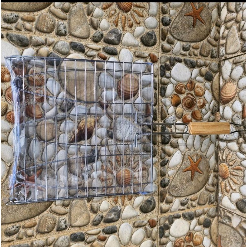 1 Set bakaran 1 pcs pemanggang stainles lebar : 28 cm panjang sampai gagang : 51,5 cm 1 pcs jepitan teflon panjang : 34,5 cm 12 pcs olesan plastik warna warni panjang : 19,5 cm lebar : 5 cm