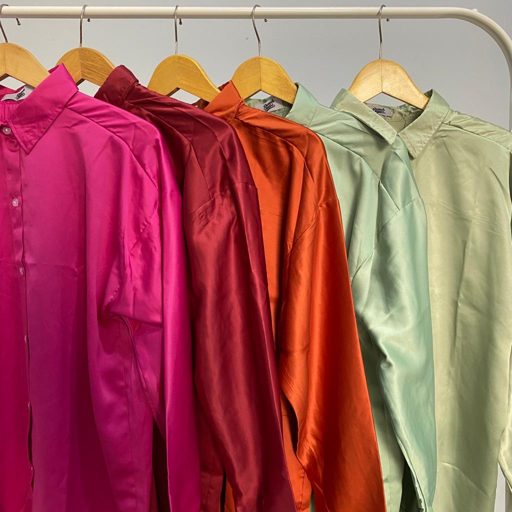 Detail: Material : Satin Premium Lingkar Dada : 120 cm Panjang Baju depan : 74 cm, belakang 80cm Panjang Lengan : 52 cm Lingkar Ketiak : 46 cm