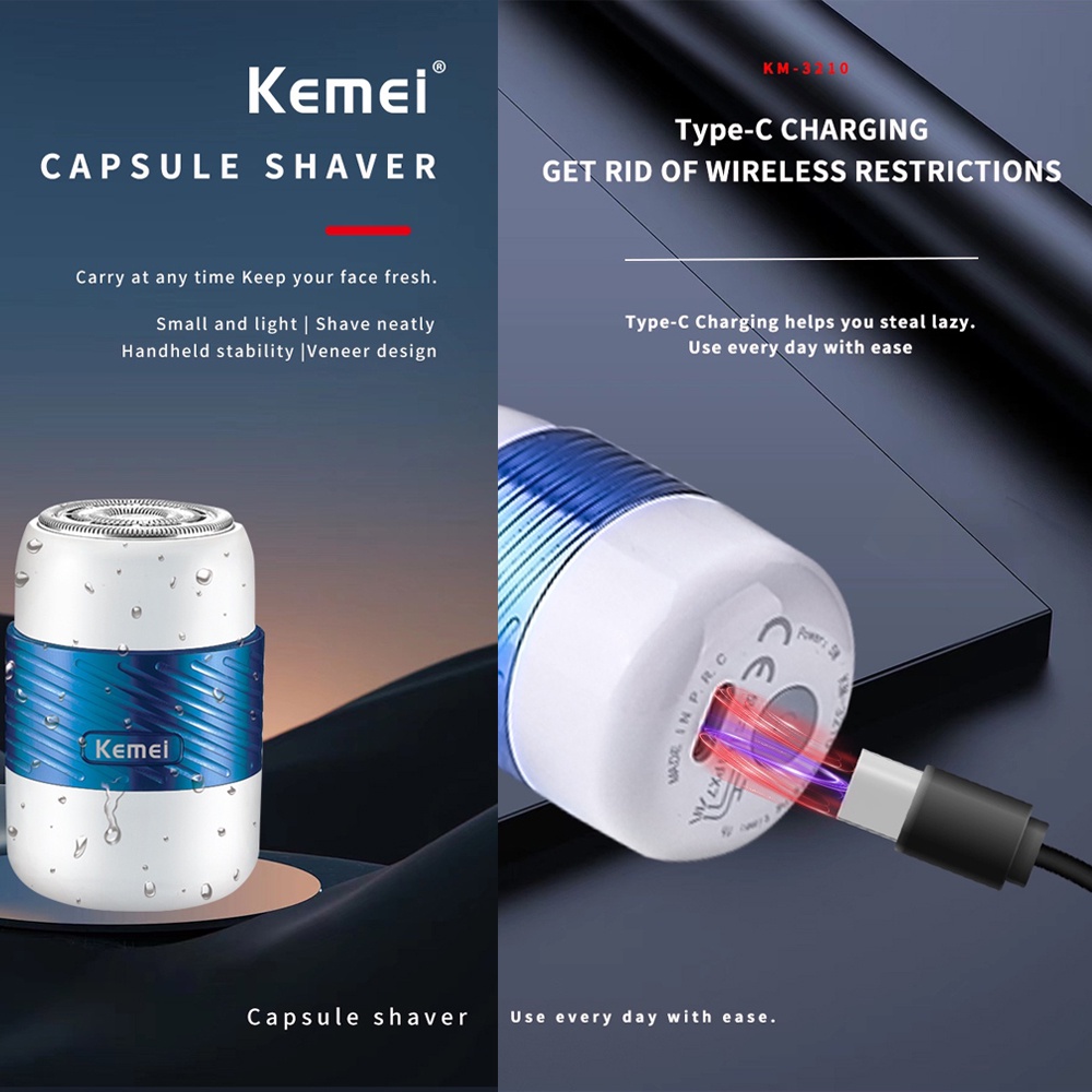 * Nama merek: kemei * Jenis Kelamin: Pria * Tipe Daya: Isi Ulang * Gunakan: Wajah, janggut, kumis,. * Kapasitas baterai: 600mah * Mode Cuci: IPX7 tahan air bisa dicuci * Waktu Pengisian Daya: 1 jam * Tegangan: 100-240v * Nomor Model: KM-3210 * Daya: 5W * Warna: Biru dan Putih * Ukuran Produk: ukuran mini