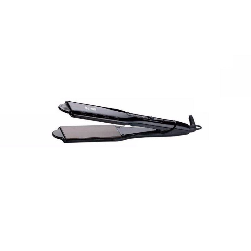 KEMEI KM 9939 catok lurus plat lebar terbuat dari plat besi yang cepat panas dan mudah untuk penggunaan nya dengan plat lebar 5cm dan panjang 12cm sangat cocok untuk meluruskan dan cepat dalam pelurusan rambut yang di lengkapi pengukur suhu yg bisa di atur sesuai dengan keinginan kita