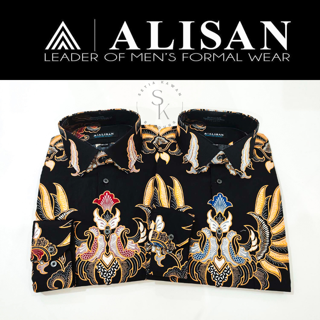 Detail Kemeja ALISAN Corak Batik Print Regular Fit Lengan Panjang ( Seri 00621 List Kuning Jumbo )