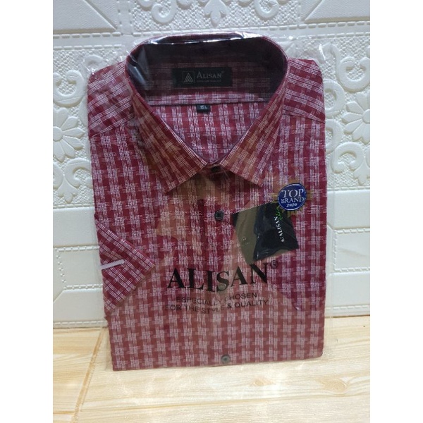 Detail Kemeja Alisan Motif Kotak Reguler Non Slimfit size 15 Tangan Pendek