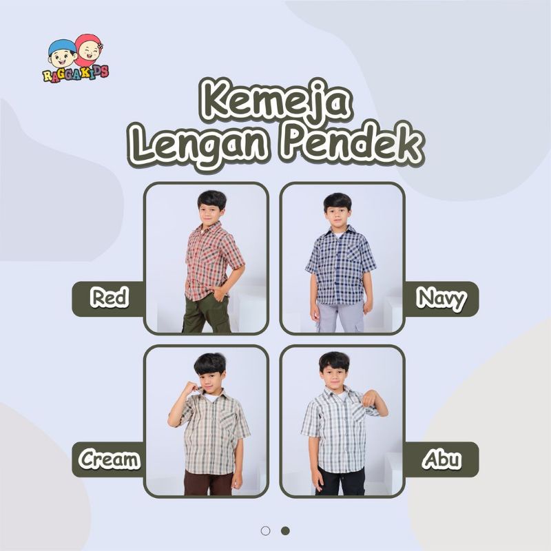 Detail Kemeja anak lengan pendek - panjang kotak-kotak Raggakids bahan katun 3-10 tahun