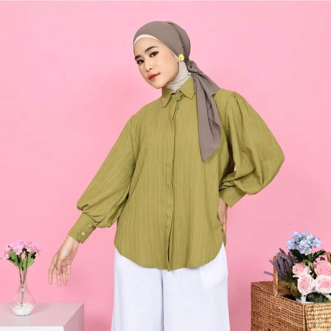 Detail KEMEJA BALON LADY CRUSH ATASAN KEMEJA LADY CRUSH LENGAN BALON KEMEJA KOREAN STYLE NINDA BLOUSE LADY CRUSH