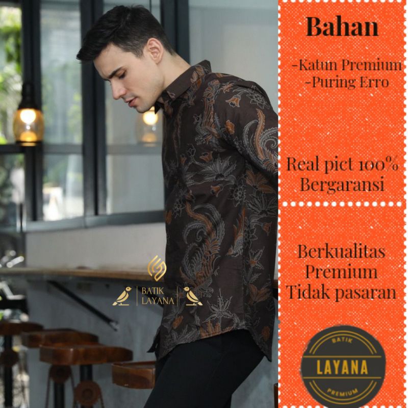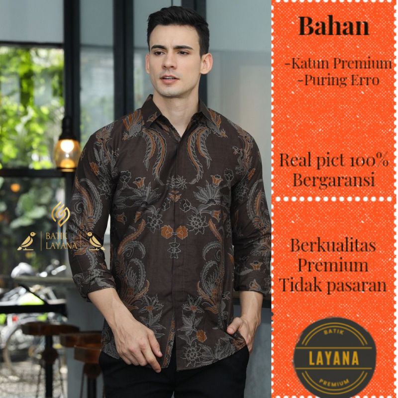 Detail Kemeja Batik Layana Adhinata Coklat Coco Slimfit Premium Kualitas Super Baju Formal Kantoran Sragaman Lebaran Prabuseno