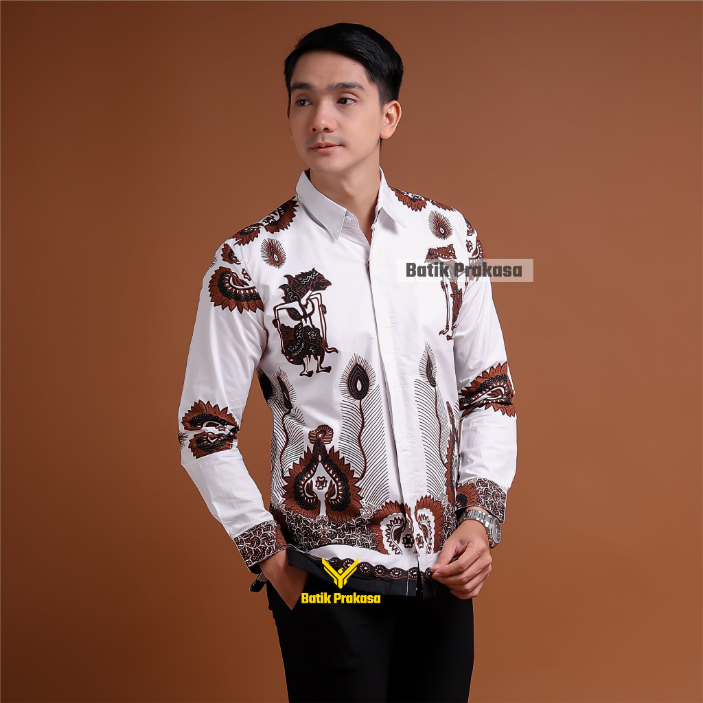 Detail Kemeja Batik Prakasa Motif Ramayana Putih Slimfit Lengan Panjang Batik Solo