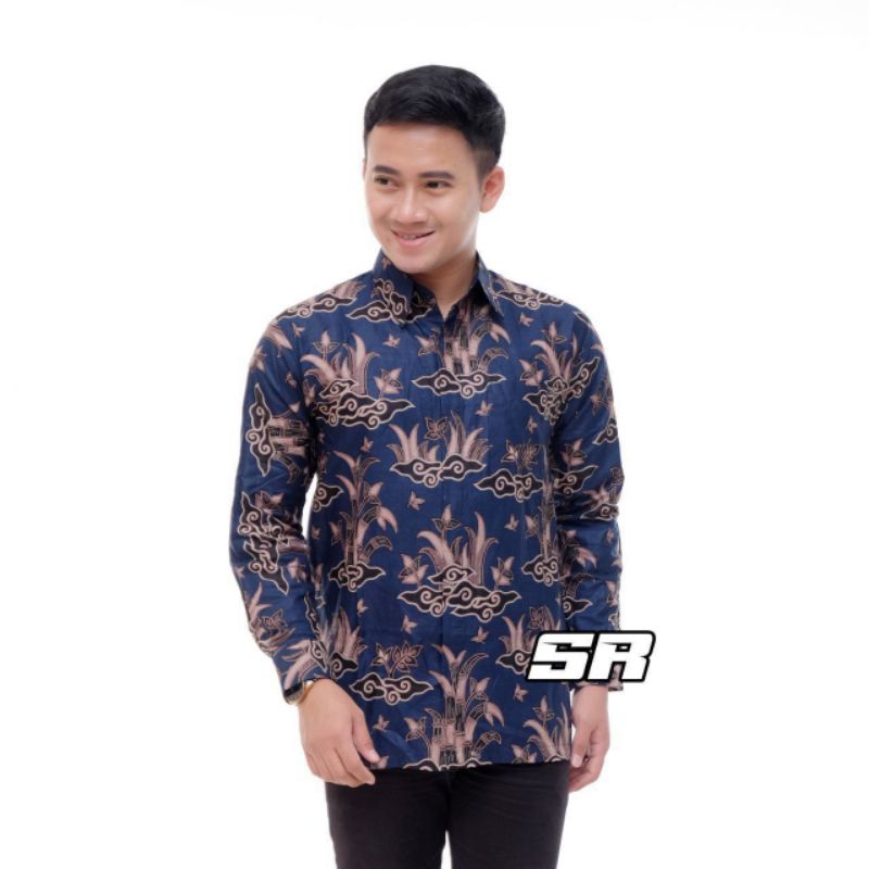 Detail KEMEJA BATIK PRIA KEKINIAN BATIK PRIA LENGAN PANJANG WARNA BIRU NAVY