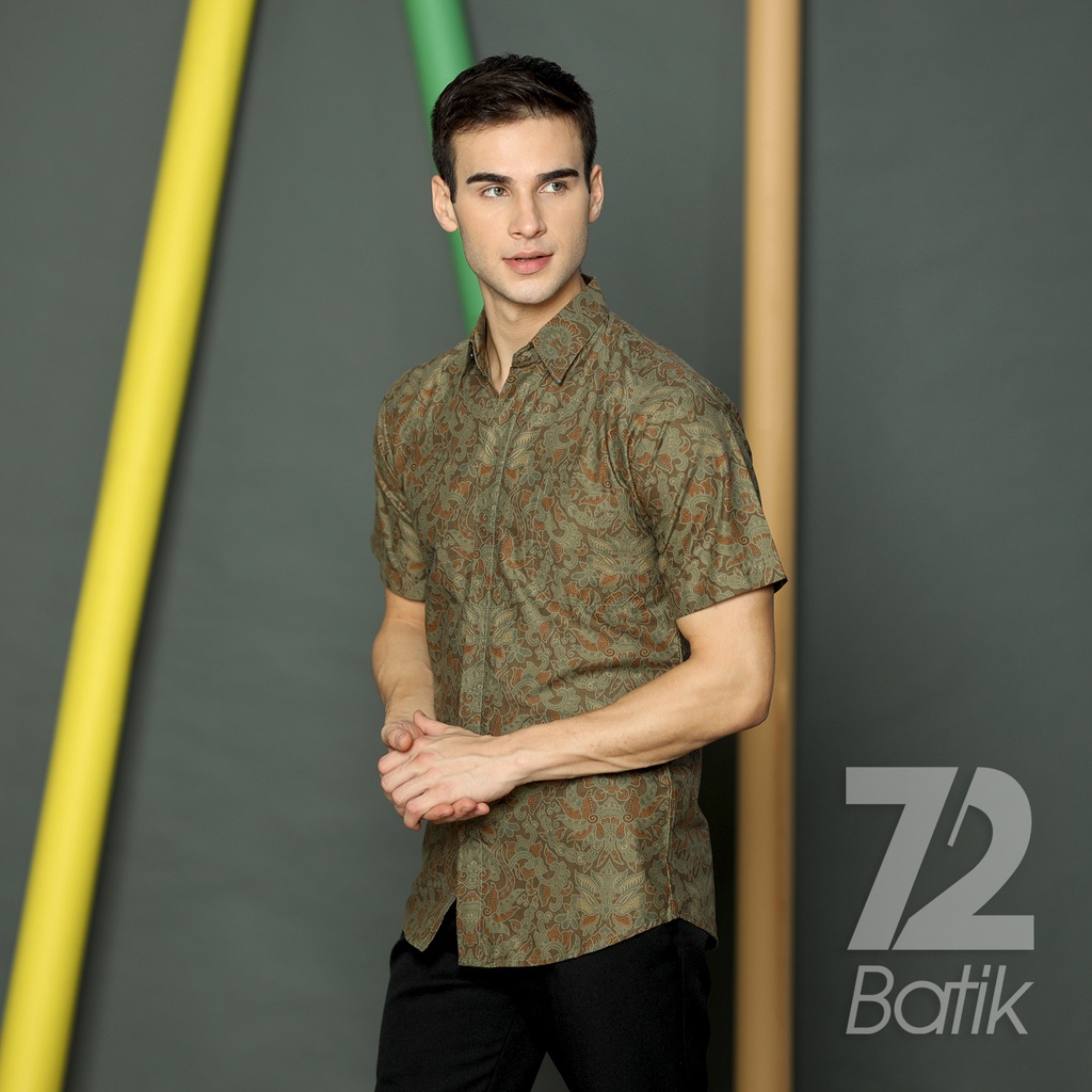 Detail KEMEJA BATIK PRIA Lengan Pendek Premium Hijau Kraton Lawasan Jogja Solo Soga 723135 Cap 72 - Baju Kemeja Atasan Pakaian Setelan Batik Pria Cowok Laki Laki Remaja Keluarga Kantor Lengan Pendek Modern Slimfit Slim Fit Premium Kekinian
