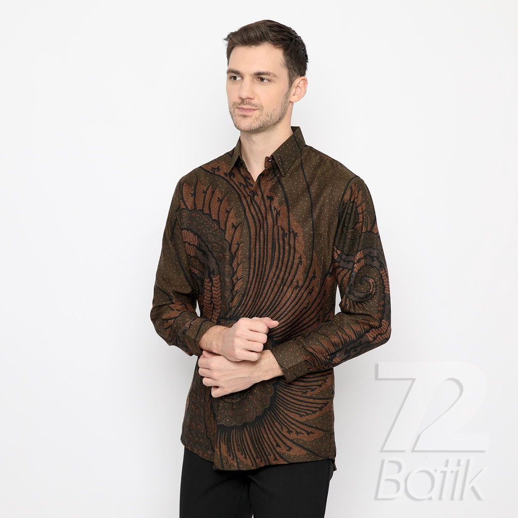 Pakaian Pria > Pakaian Tradisional > Atasan > KEMEJA BATIK PRIA LENGAN PANJANG Kemeja Dobby Slimfit Motif Tentaken Warna Hijau Alam Coklat 722401 Cap 72 - Baju Kemeja Atasan Pakaian Setelan Batik Pria Cowok Laki Laki Remaja Keluarga Kantor Lengan Panjang Modern Slimfit Slim Fit Premium Kekinian