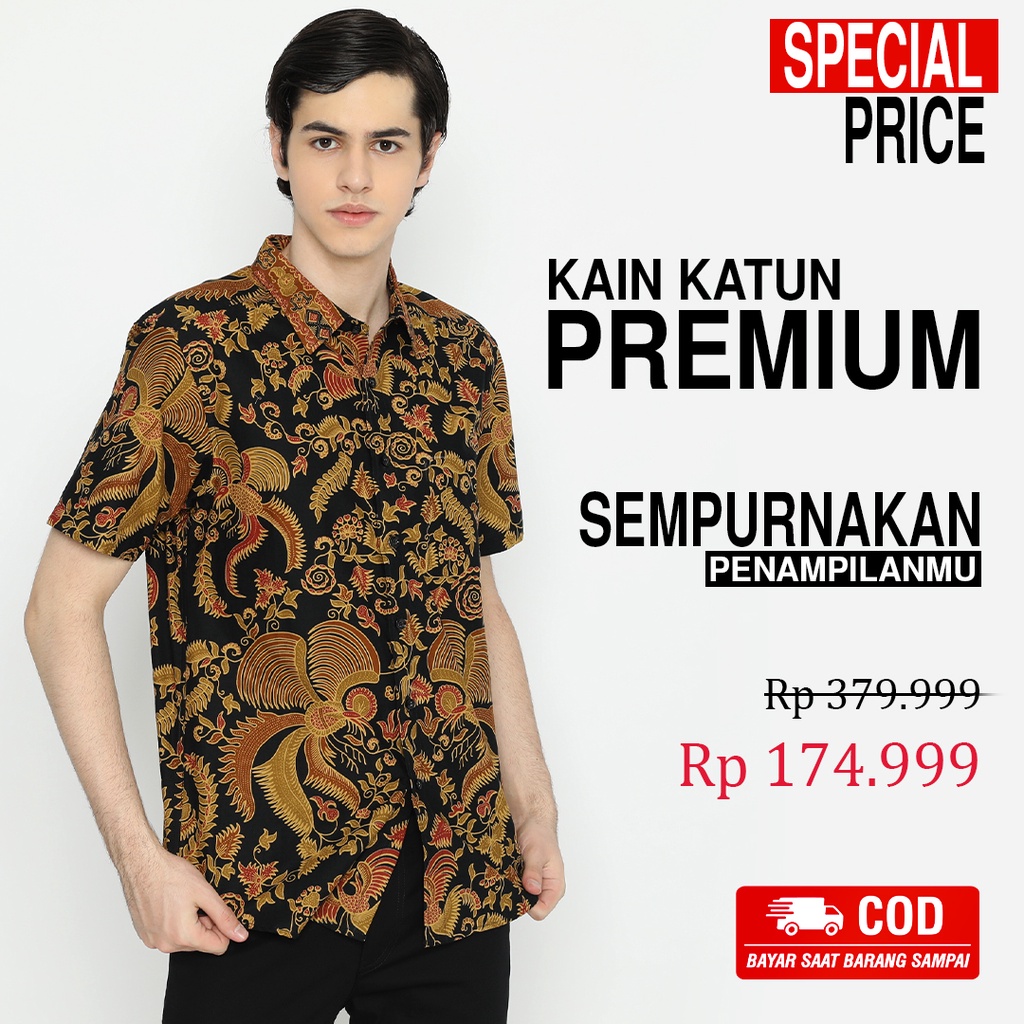 Pakaian Pria > Pakaian Tradisional > Atasan > KEMEJA BATIK PRIA Lengan Pendek Premium Motif Burung Warna Hitam Coklat 725453 Cap 72 - Baju Kemeja Atasan Pakaian Setelan Batik Pria Cowok Laki Laki Remaja Keluarga Kantor Lengan Pendek Modern Slimfit Slim Fit Premium Kekinian