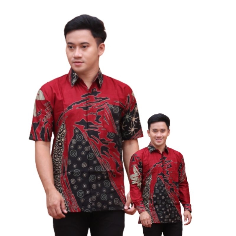 Detail KEMEJA BATIK PRIA M L X XXL MOTIF CHAVA MERAH