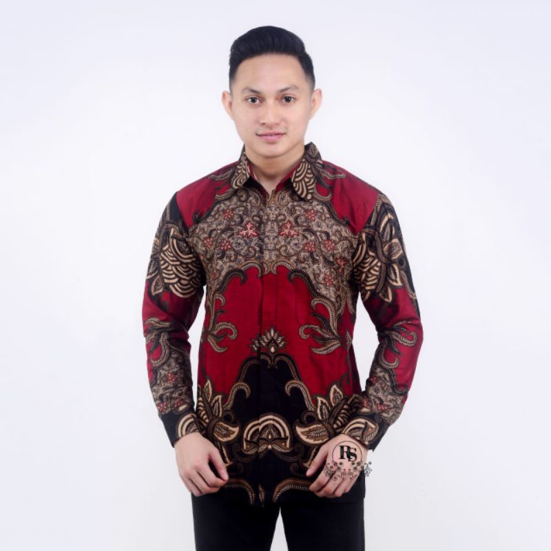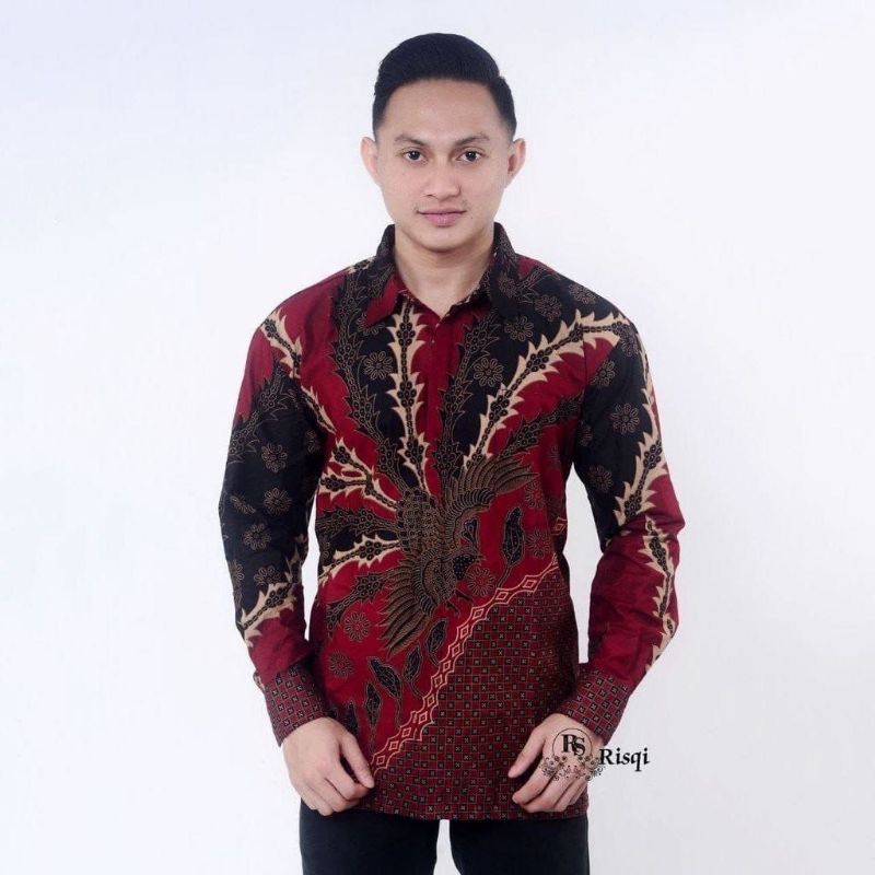 Detail KEMEJA BATIK PRIA WARNA MERAH MAROON BATIK PRIA KATUN HALUS S, M, L, XL, XXL, 3XL