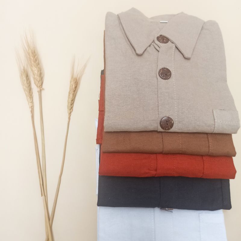 Detail KEMEJA BLOUSE ALODIE OVERSIZE KATUN LINEN / KATUN RAMI ANAK UNISEX ADEM LEMBUT PREMIUM Kemeja Katun Linen Anak