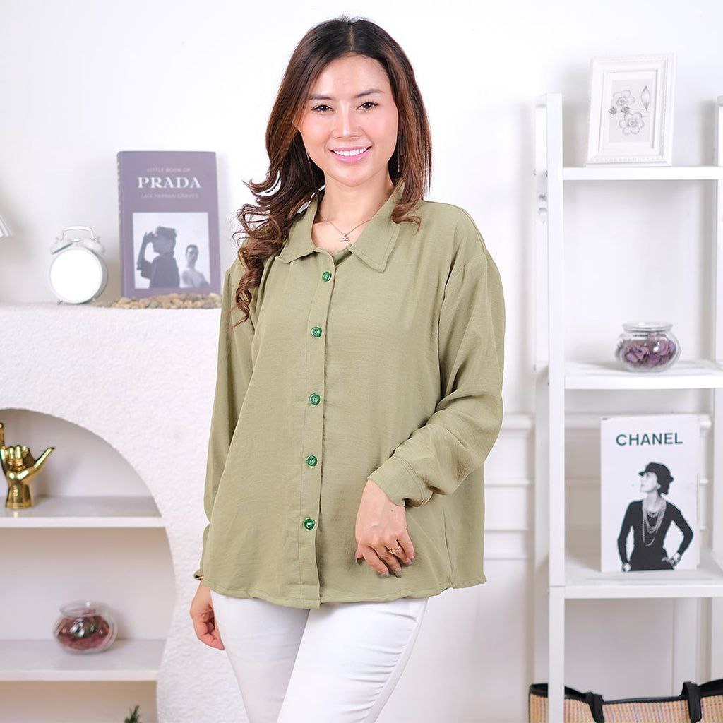 Detail KEMEJA CASUAL POLOS BAHAN CRINKLE AIRFLOW/ KEMEJA WANITA OVAL