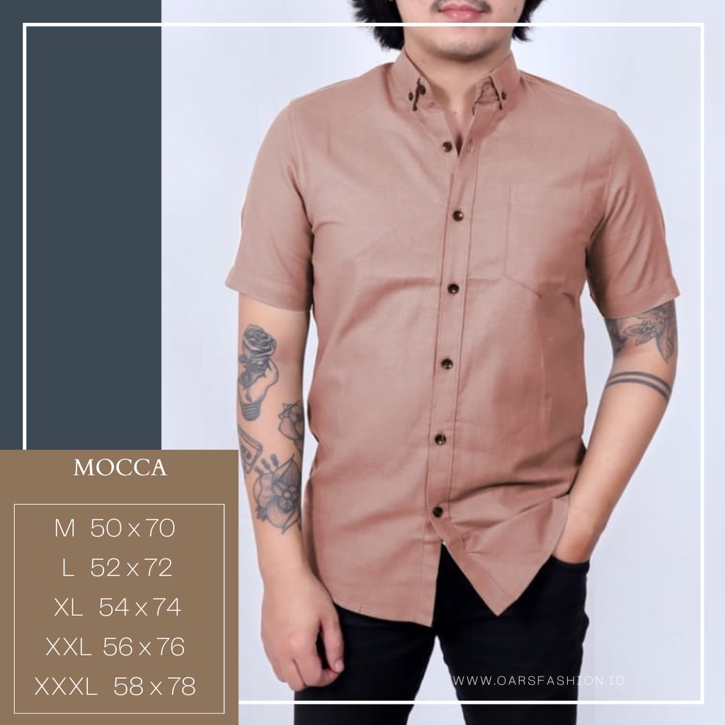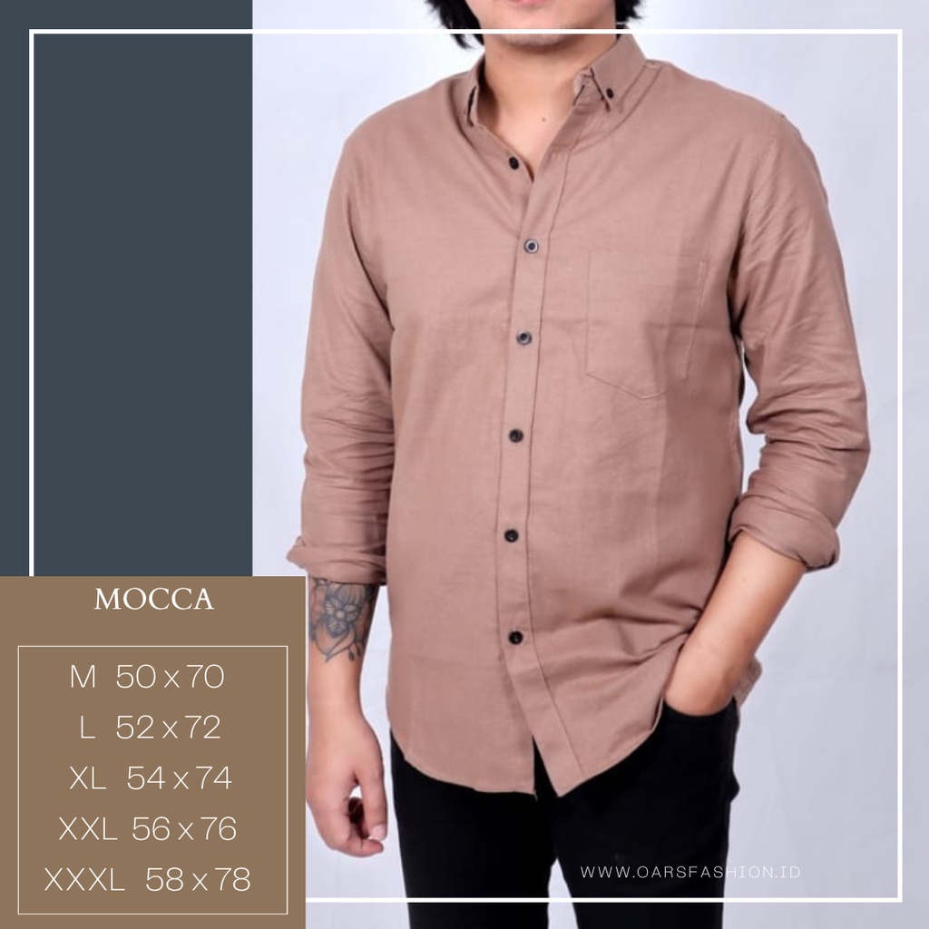 Detail Kemeja Coupel Ayah dan anak laki laki Lengan Panjang warna moca moka Polos baju cowok mocca slimfit casual