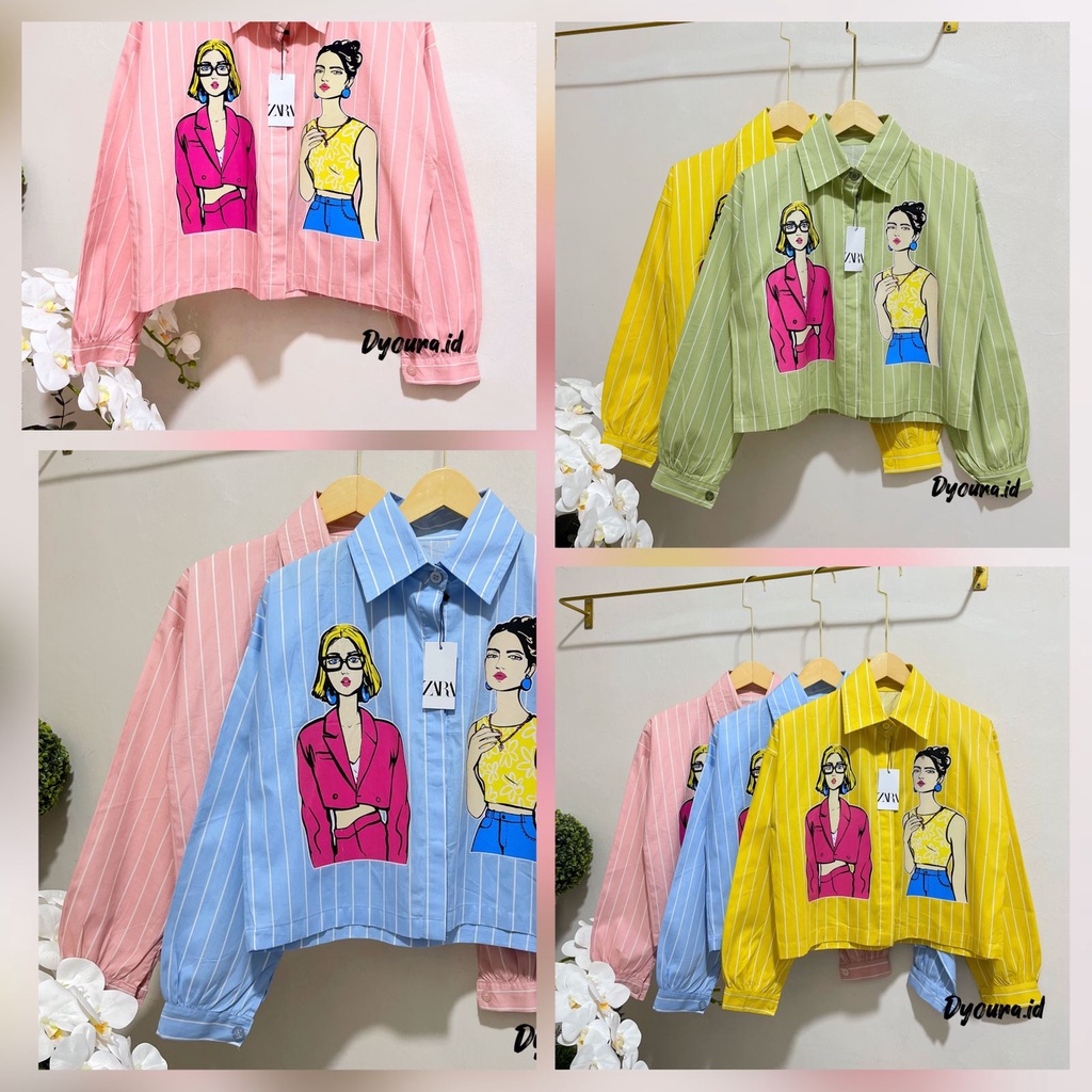 kemeja crop salur /Atasan Kemeja Busui || Kemeja Sablon Viral || KEMEJA CROPE SABLON WOMEN Baju Atasan Wanita Top Kekinian / kemeja prit/ kemeja crop print
