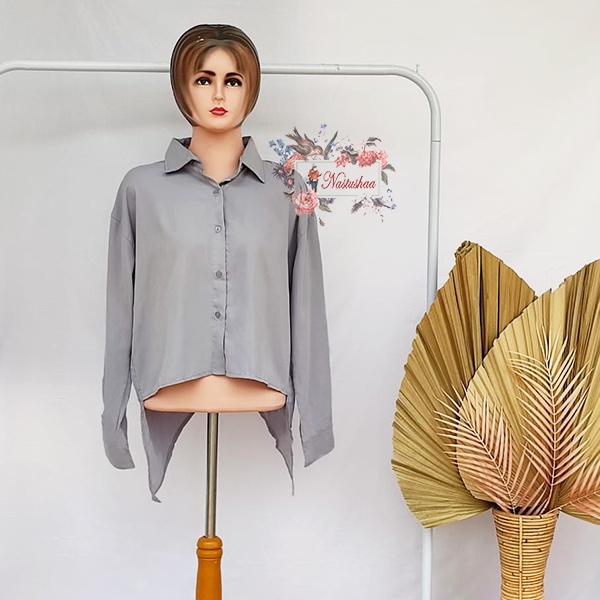 •Bahan= Wolly Crepe Kemaja Sherina Abu+kancing Hidup •Model= Kemeja Crop Lengan Panjang •Size= Fit - XXL •Lingkar Dada= 104cm •Panjang Baju= 52cm