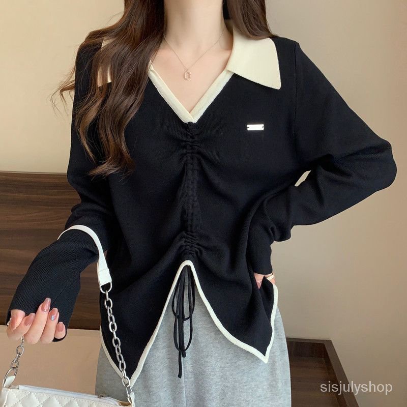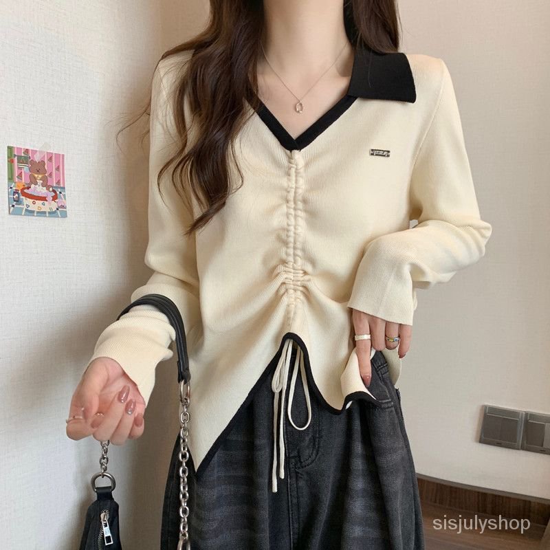 Detail Kemeja dasar musim semi wanita 2023 atasan serut kurus baru