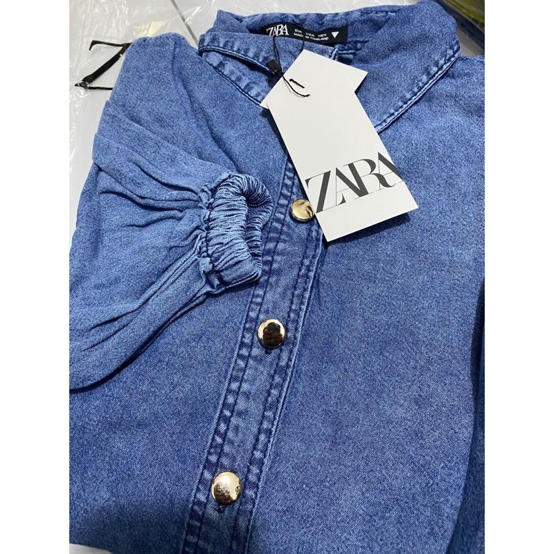 Pakaian Wanita > Denim > Atasan Denim > kemeja denin zara tangan karet
