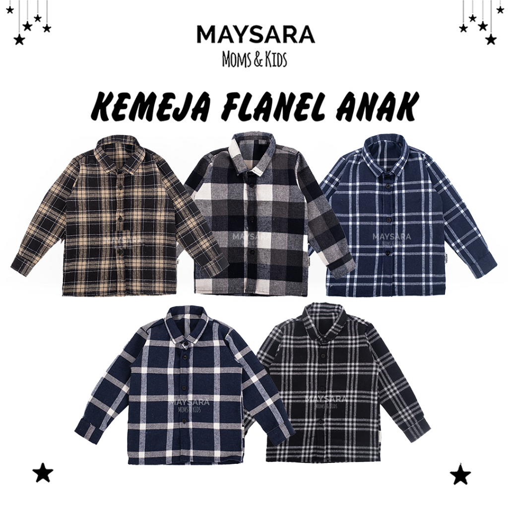 Detail Kemeja Flanel Anak Lengan Panjang Laki - Laki Perempuan 1 2 3 4 5 tahun