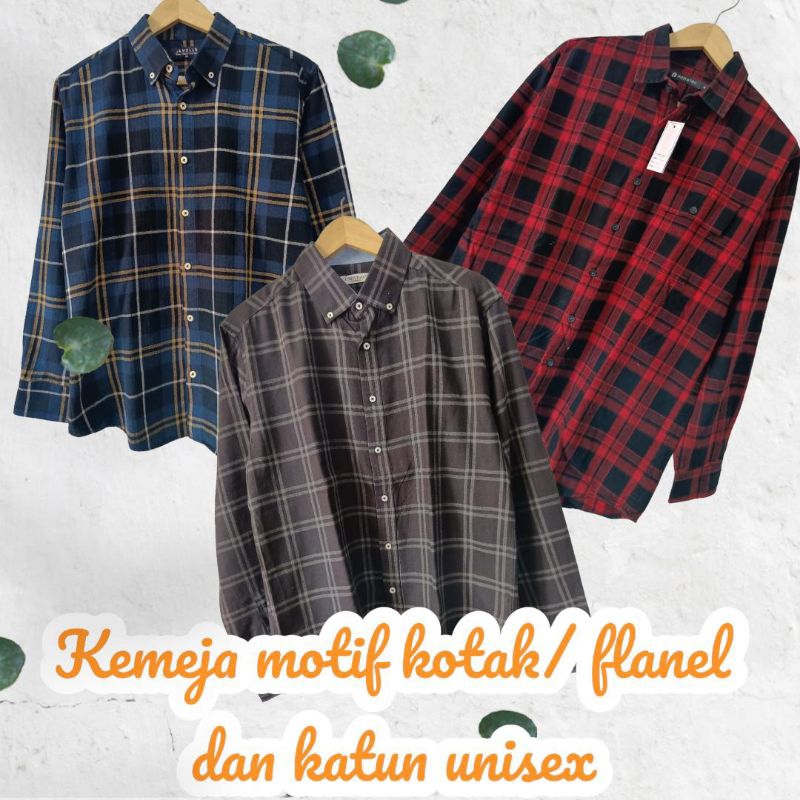 Detail Kemeja flanel kotak katun pria dan wanita unisex