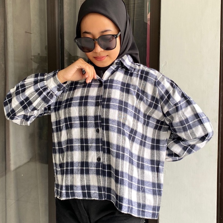 Nama produk : Kemeja Flanel Oversize Bahan : Flanel, Semi Woll Detail Ukuran : Fit to XXL Lingkar Dada : 130 cm Panjang Baju : 65 cm Lengan : 45 cm