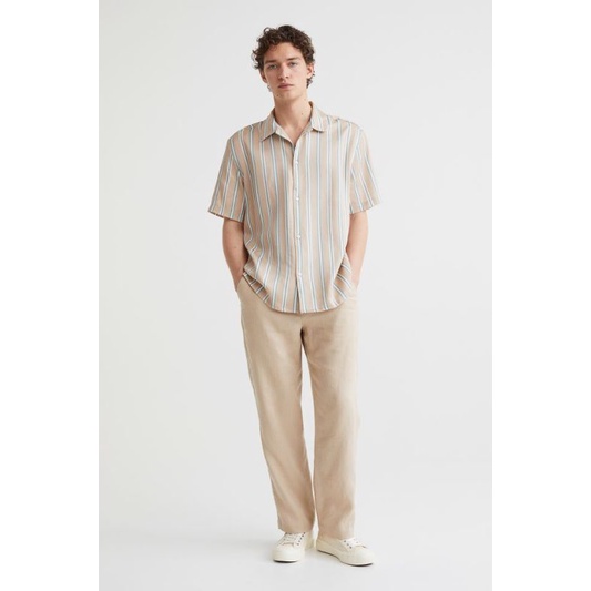 Kemeja H&M Lyocell Short / kemeja hnm cream stripe original