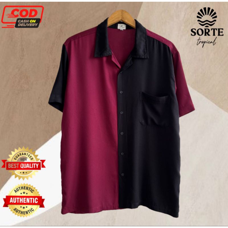 Kemeja Hawaiian Pantai Polos Plain - Two Tone Edition Maroon & BlackKemeja Hawaiian Pantai Polos Plain - Two Tone Edition Maroon & Black