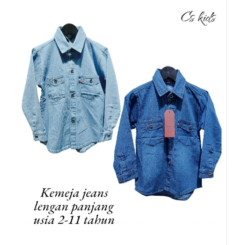 Kemeja Jeans Anak Lengan Panjang usia 2-12th/Kemeja denim anak lengan panjangKemeja Jeans Anak Lengan Panjang usia 2-12th/Kemeja denim anak lengan panjang