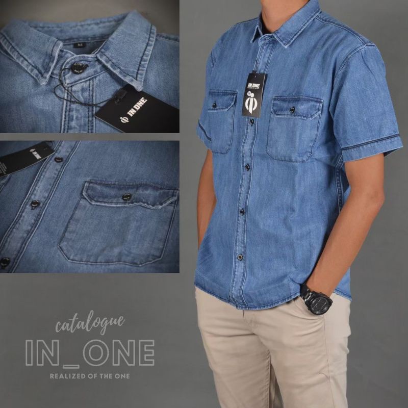 kemeja jeans lengan pendek pria viral terbaru