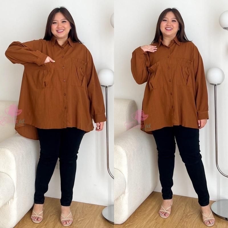 Pakaian Wanita > Atasan > Kemeja & Blouse > kemeja jumbo ld 140 cm/ kemeja kk oversize poly rayon