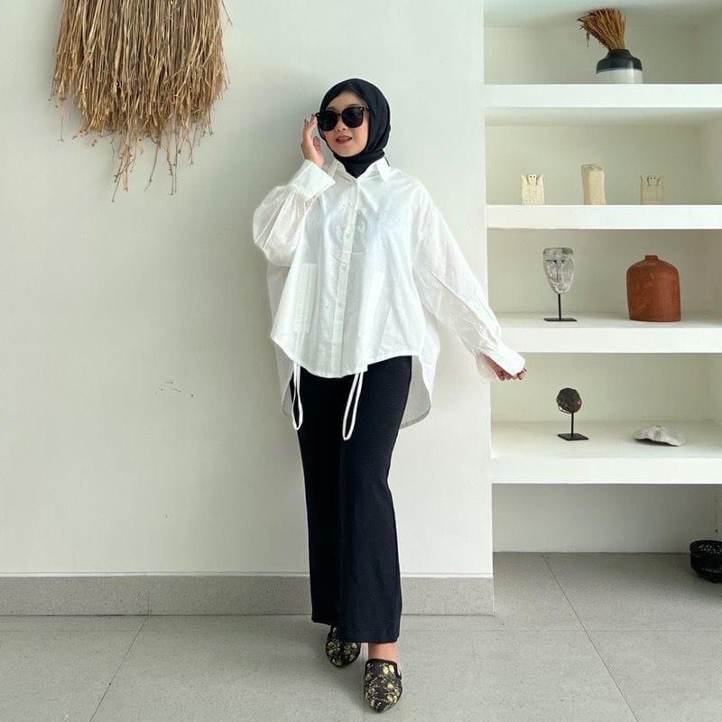 Pakaian Wanita > Atasan > Kemeja & Blouse > Kemeja Katun Oversize Serut Depan - Katun Shirt Oversize