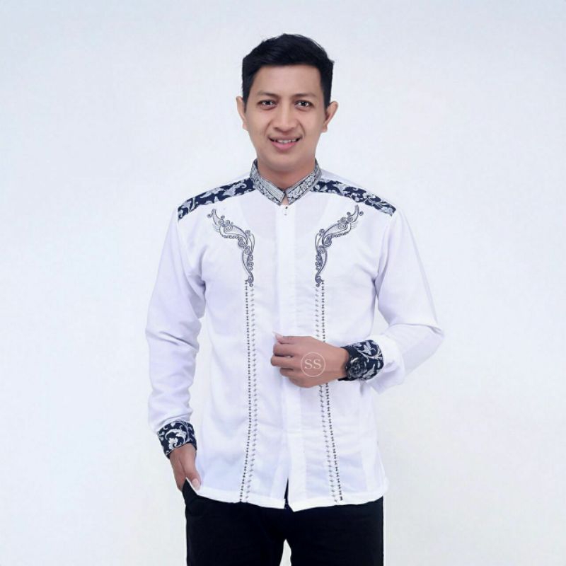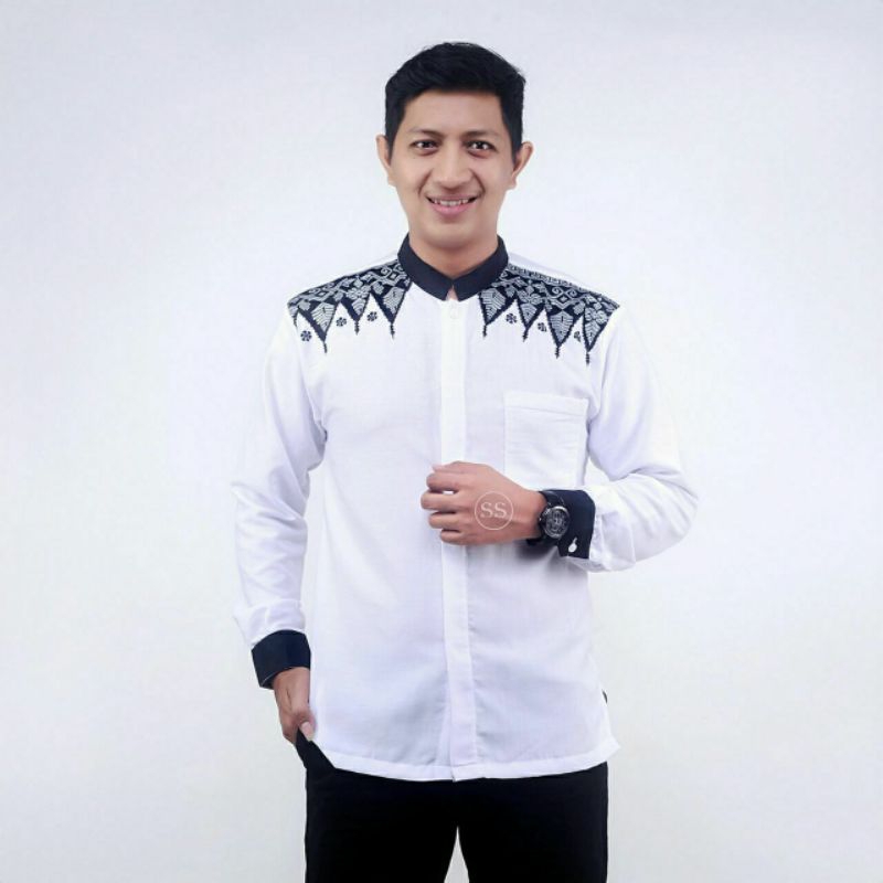 Detail KEMEJA KOKO BORDIR LENGAN PANJANG POLOS WARNA PUTIH KATUN