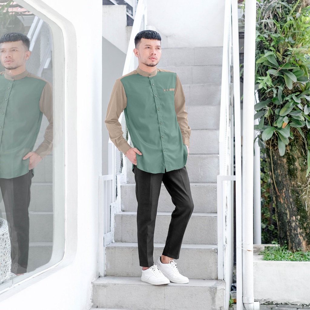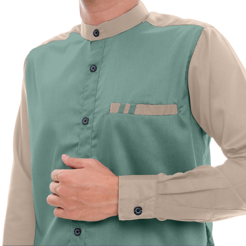 Kemeja Koko Lengan Panjang Toyobo Fodu Kombinasi Mint Khaki dibuat oleh penjahit profesional dan berpengalaman dengan bahan berkualitas terpilih menjadikan koko DALAH ini rapi dan nyaman dikenakan