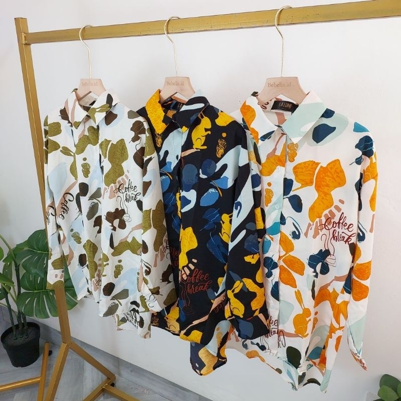 Detail KEMEJA LALUNE MOTIF COFFEE BREAK 100% ORIGINAL IMPORT BANGKOK