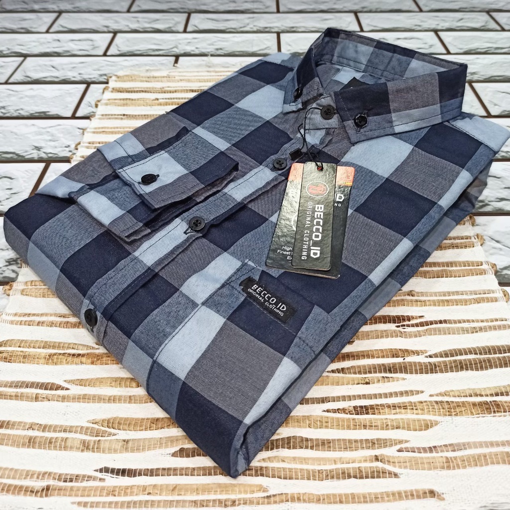 Detail kemeja lengan panjang motif kotak-kotak pria wanita import - kemeja katun lengan casual panjang