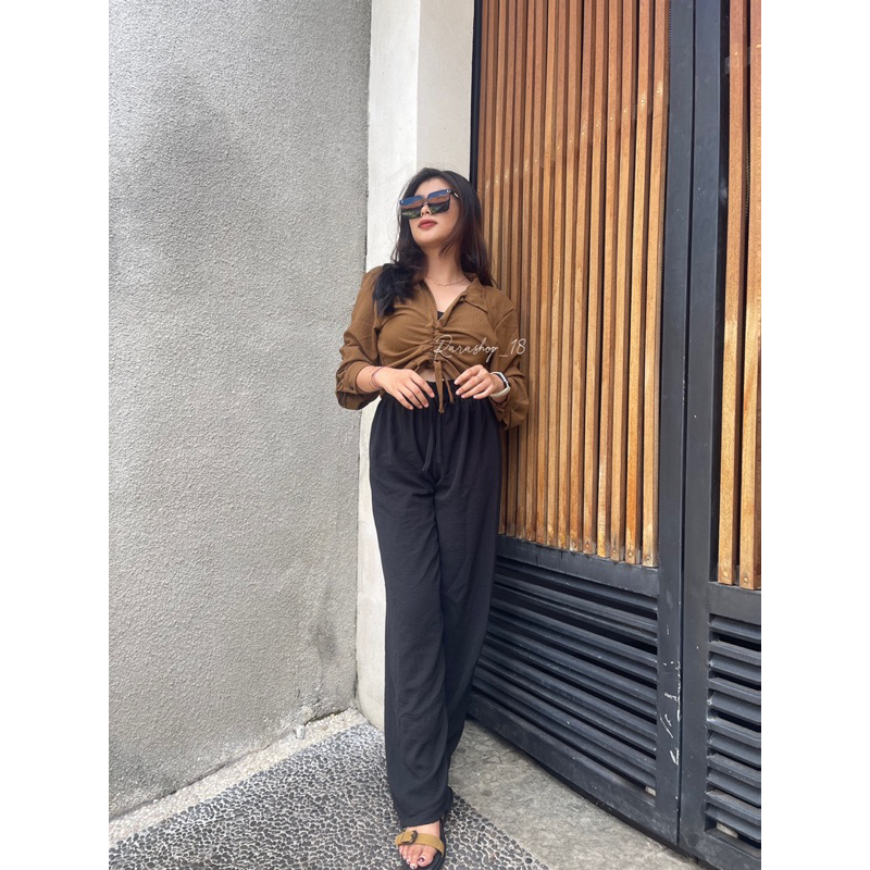 Detail Kemeja Lengan Panjang Serut Tengah Bahan airflow