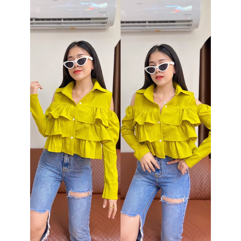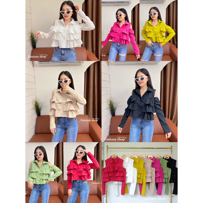 Detail KEMEJA MOTIF RUFFLE FANTASY SHOP IMPORT BANGKOK CODE F 17
