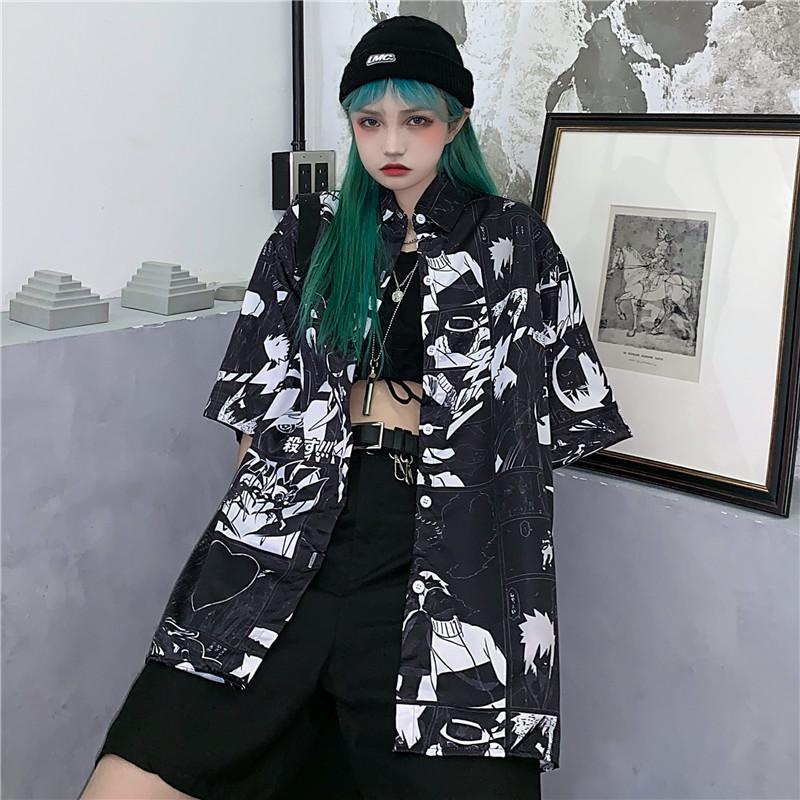 Detail Kemeja Naruto Sasuke Fullprint Black Anime Manga Naruto Premium Unisex