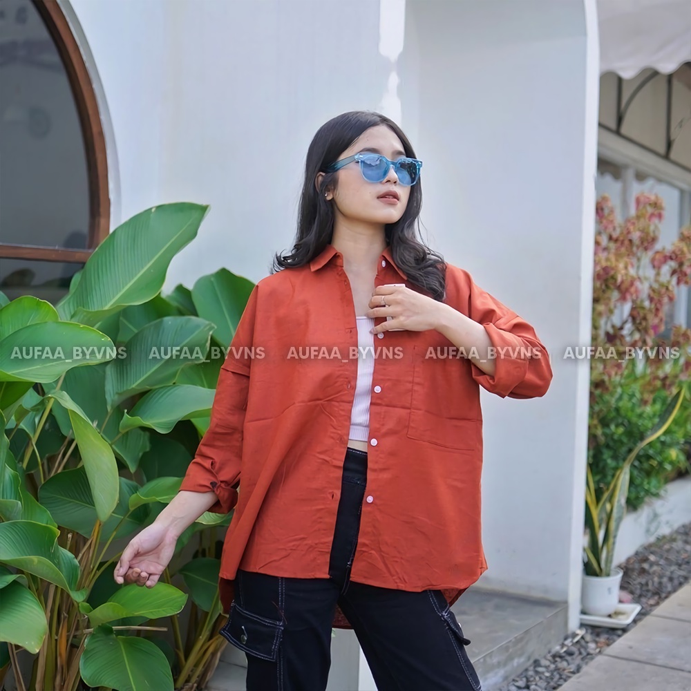 KEMEJA OLIVIA OVERSIZE / JADE SHIRT LINEN POLOS / ATASAN OVERSIZE POLOS WANITA JADE OLIVIA LINEN