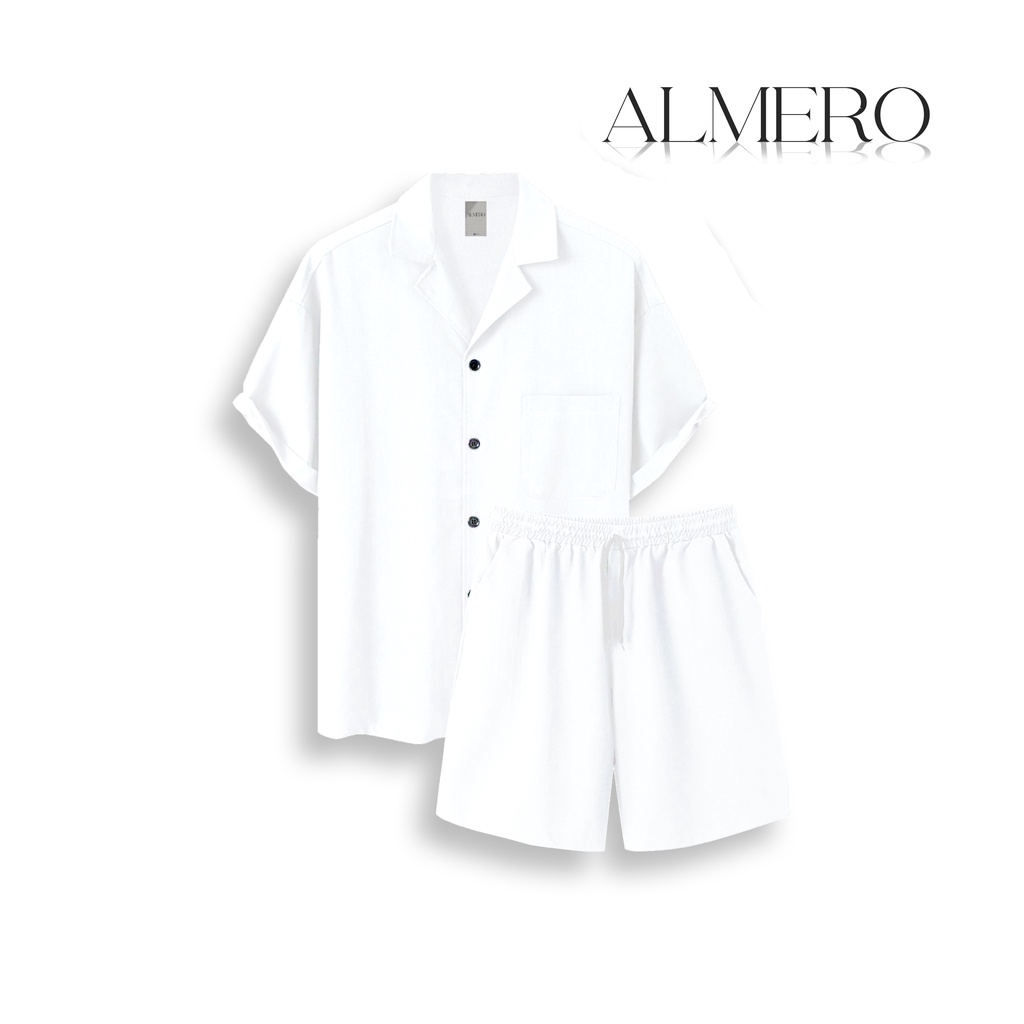 kualitas : ORIGINAL ALMERO (100% premium) GAMBAR : 100% REAL PICT unisex : untuk pria / wanita warna : Hitam, broken withe, dark gray, olive, terakotta Pola : Padat Kerah : Revere Collar Ketebalan : Sedang Bahan : Poliester (import) Elemen Desain : Serut, Saku, Kancing Isi Kemasan: 1 * tangan pendek 1 * Celana Pendek