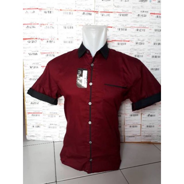 KEMEJA PENDEK POLOS KOMBINASI KERAH MERK D2V NON STREET Kemej D2V merupakan kemeja polos dengan Varisi warna di kerah, kancing dan Lengan. Pada bagian lengan terdapat kancing untuk menggunakan stik balik atau dibuat polos.