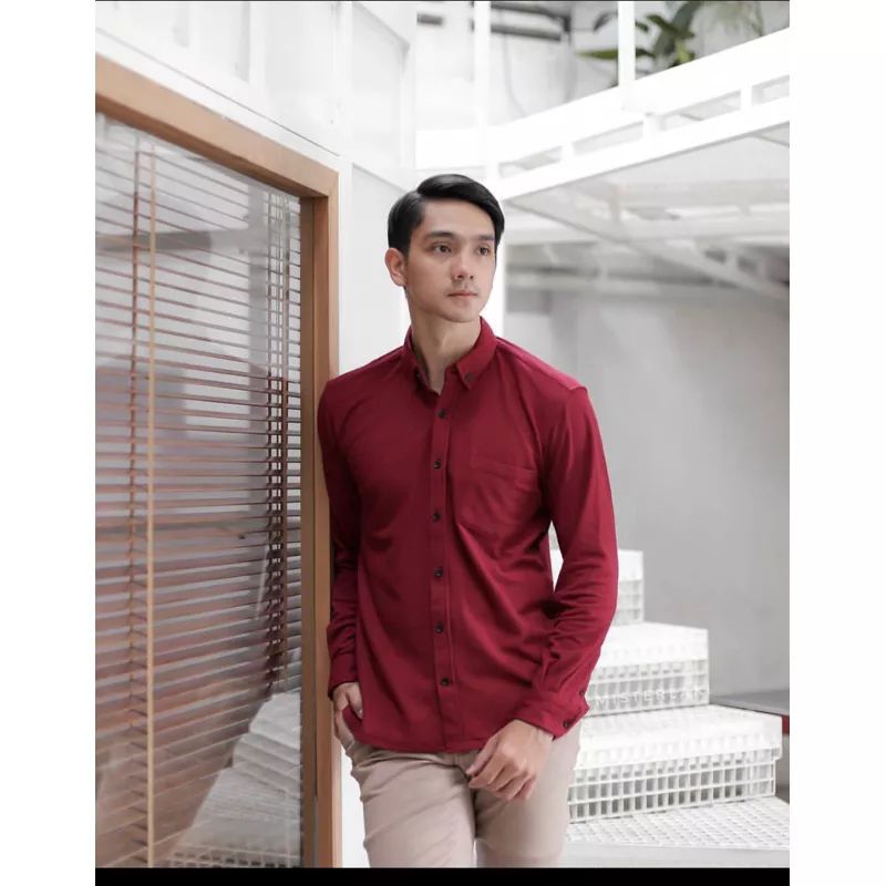 Detail Kemeja Pique Polos Lengan Panjang Pria Casual Paling Trend 2022 Hem Mode LongShirt Bahan Catton Pique 24s