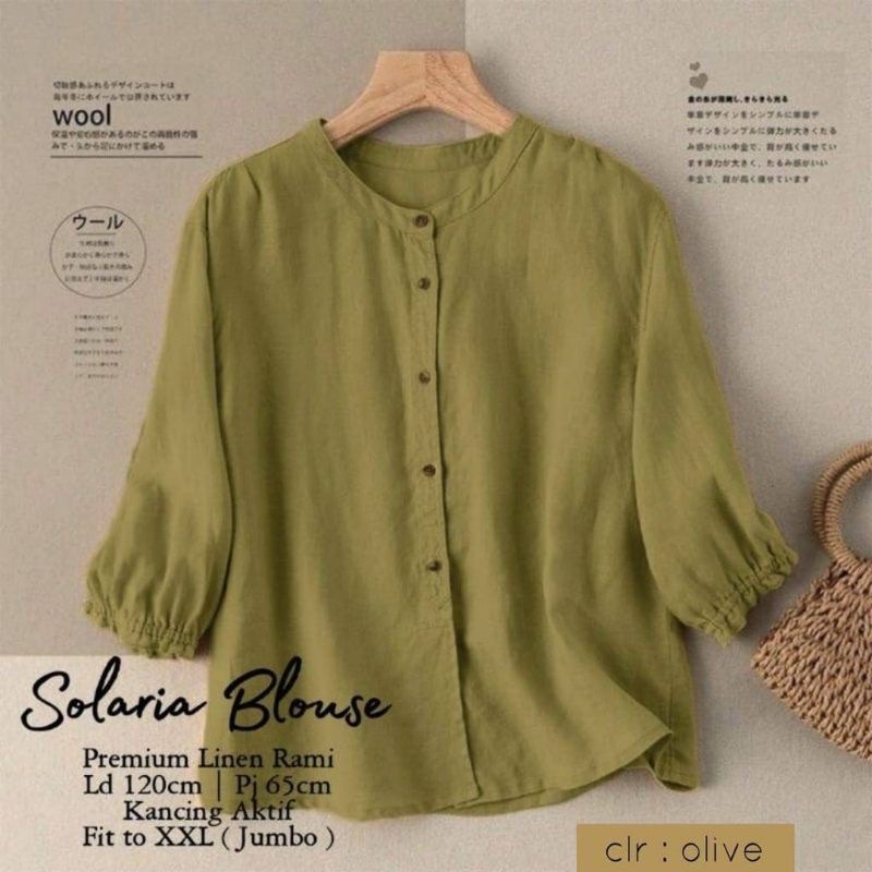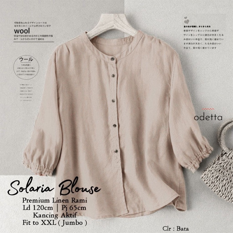 Detail Kemeja Polos Bahan Katun Linen SOLARIA BLOUSE Atasan Wanita Full Kancing OOTD
